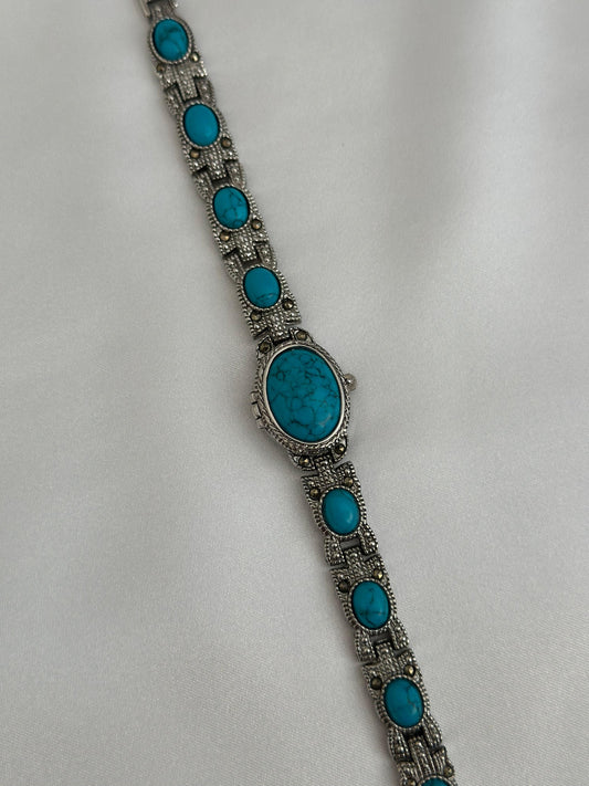 Montre vintage à pierres précieuses bleues
